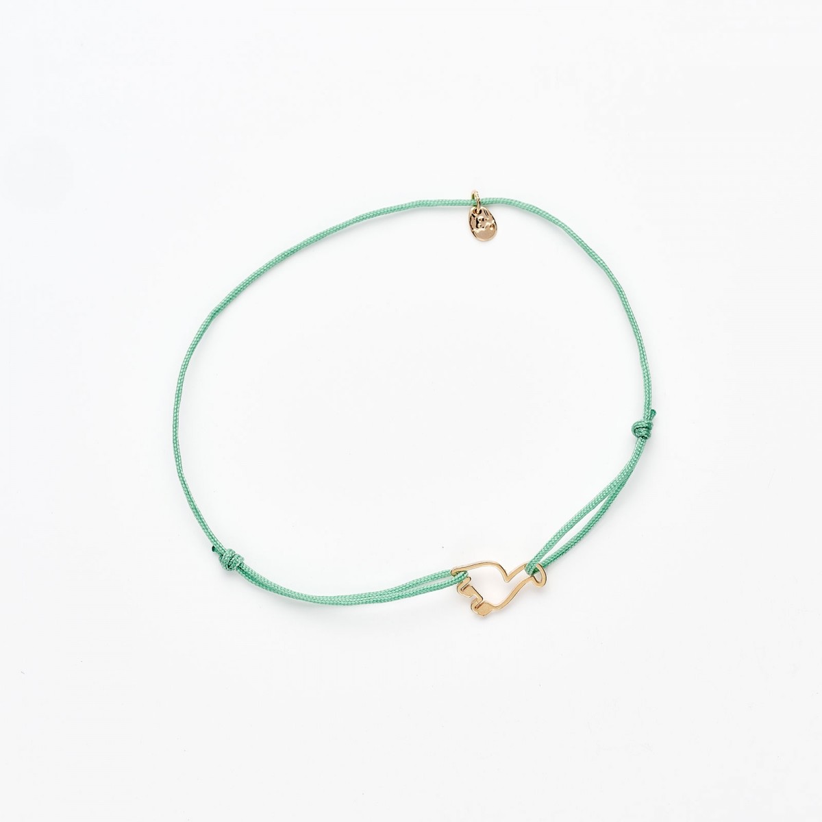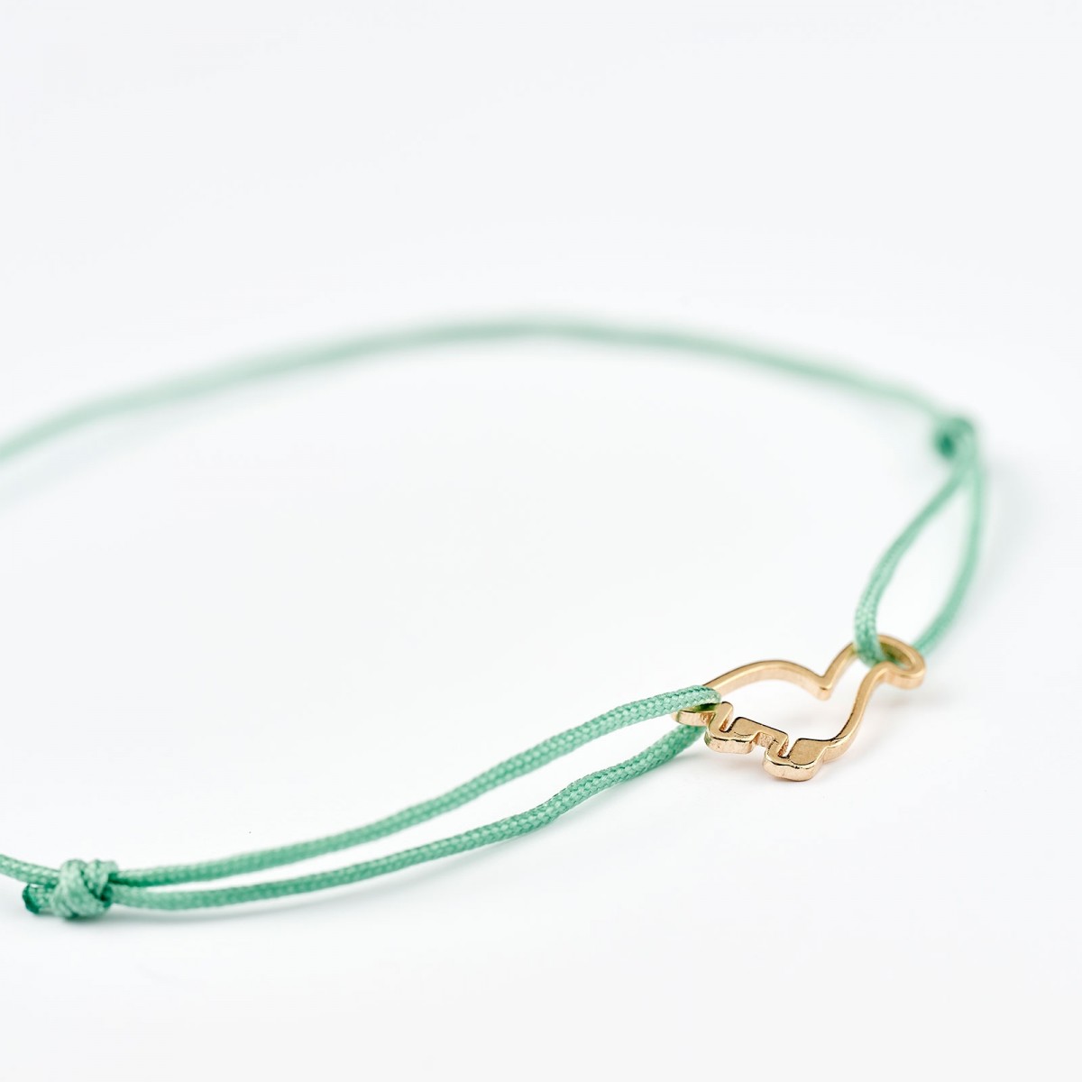 Bracelets coulissants de couleur, en taille enfant et adaptable à tous les poignetsDino en laiton, doré à l’or fin. Cordon en nylon : bleu turquoise.