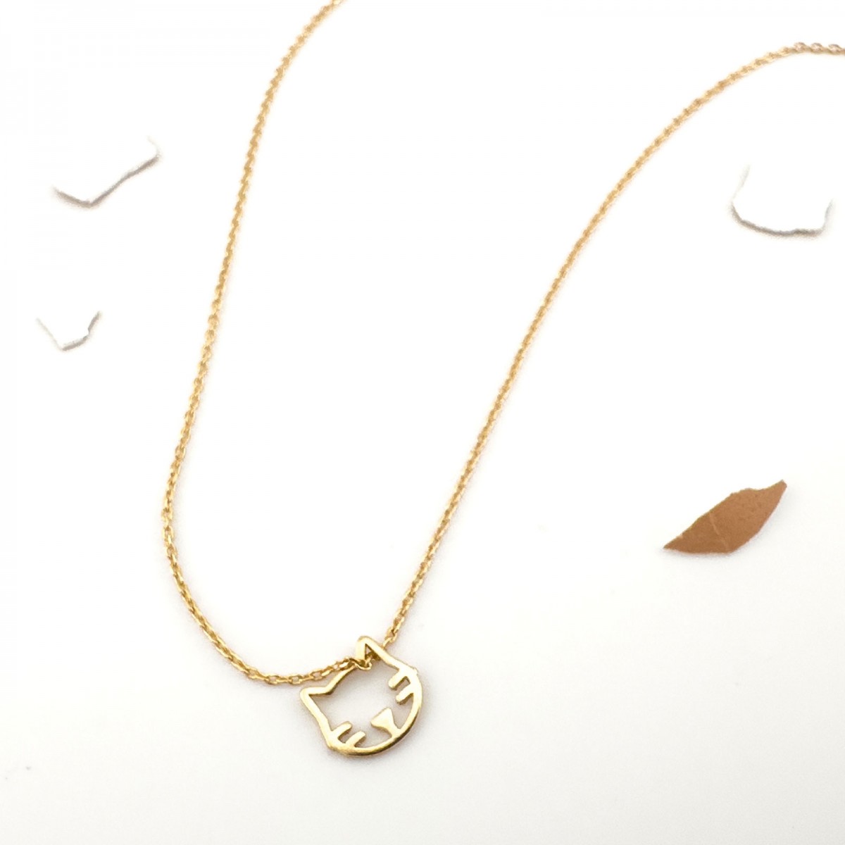 Moustache, notre collier petit chat en laiton doré 3 microns est le cadeau parfait suspendu à une chaîne.