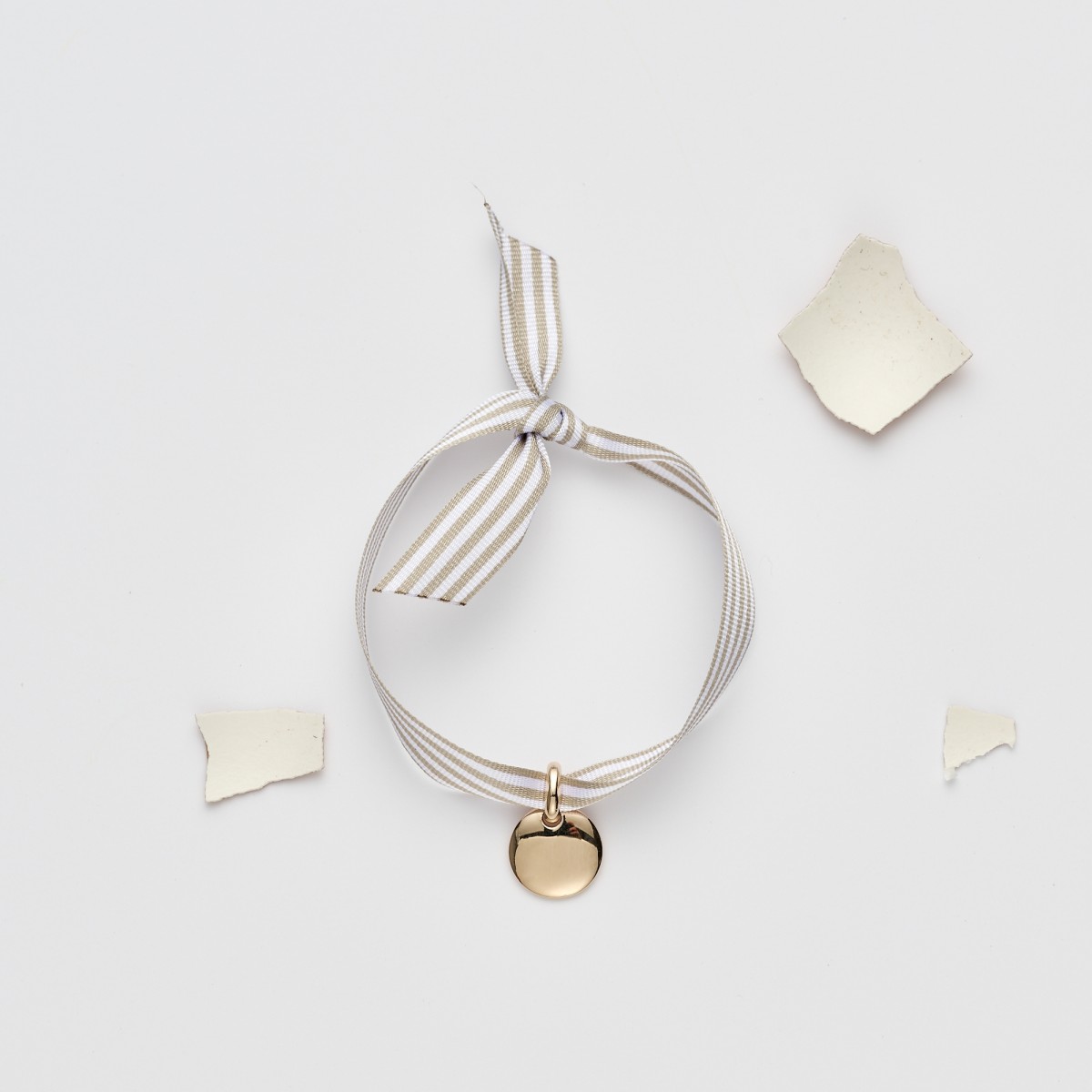 Bracelet Cabane,Bracelet en ruban à nouer 9 mm de couleur et pendentif en plaqué or 3 microns.Rayure gris et blanc