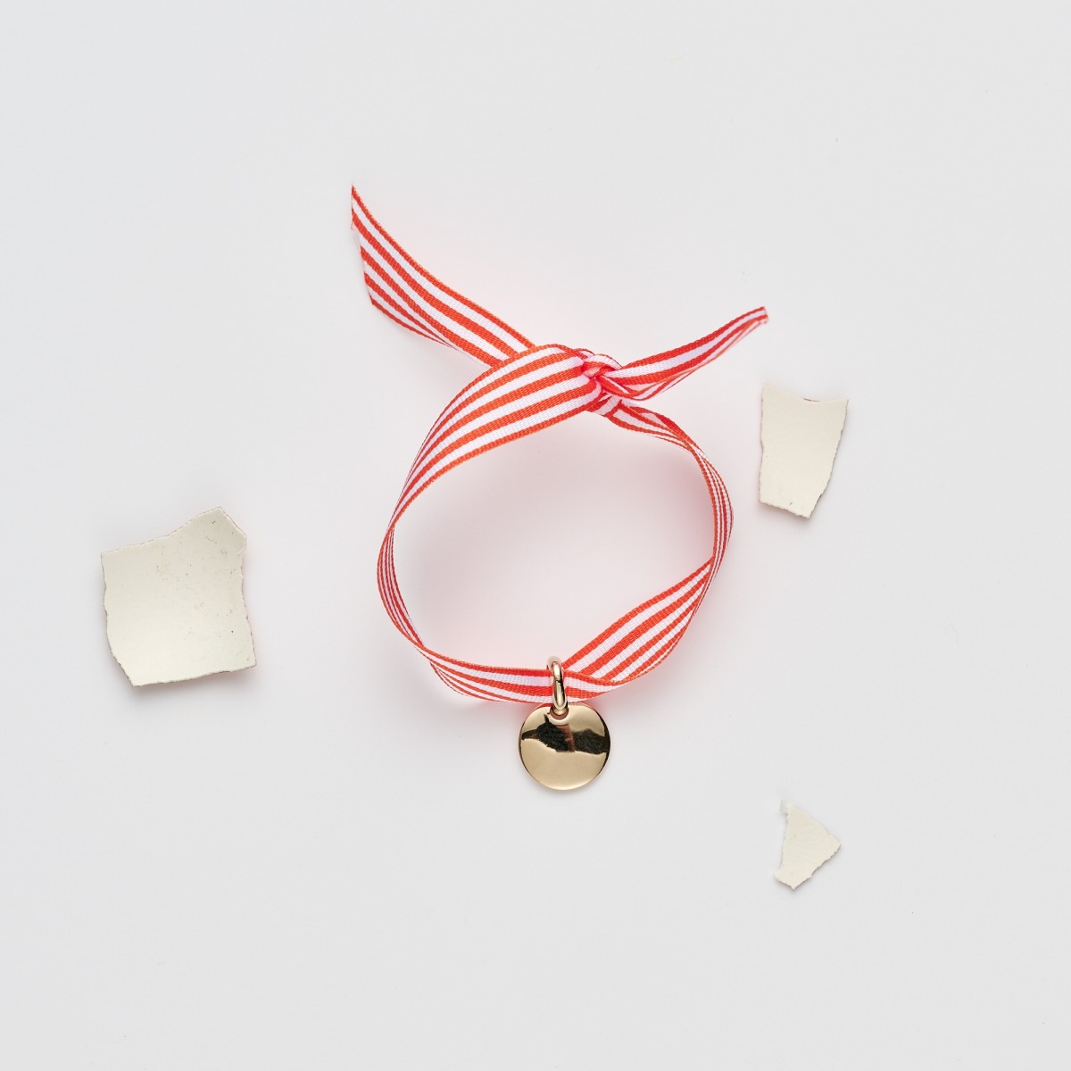 Bracelet Cabane,Bracelet en ruban à nouer 9 mm de couleur et pendentif en plaqué or 3 microns.Rayure orange et blanc