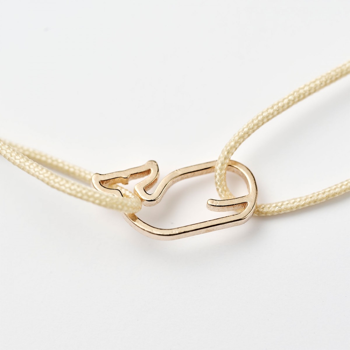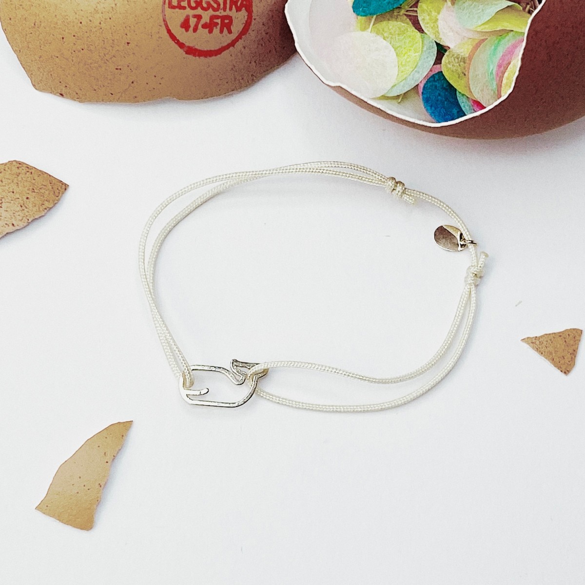 Bracelets coulissants de couleur, en taille enfant et adaptable à tous les poignetsBaleine en laiton, doré à l’or fin 3 microns. Cordon en nylon : vanille.