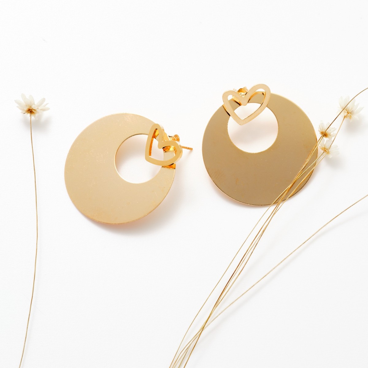 Elles sont composées d'une puce coeur et d'une manchette en laiton doré à l'or fin. C'est le mix and match parfait que vous pouvez choisir de porter de part et d'autre de vos oreilles, ensemble ou séparemment...