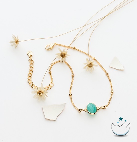 Bracelet chaîne perlée avec chaînette de rallonge en laiton doré 3 microns avec breloque en Amazonite. Il apportera tous les bienfaits des pierres à celle qui le portera (Amazonite : Donne la force vitale, stimule l’aura et la créativité, apaise et diminue le stress.).