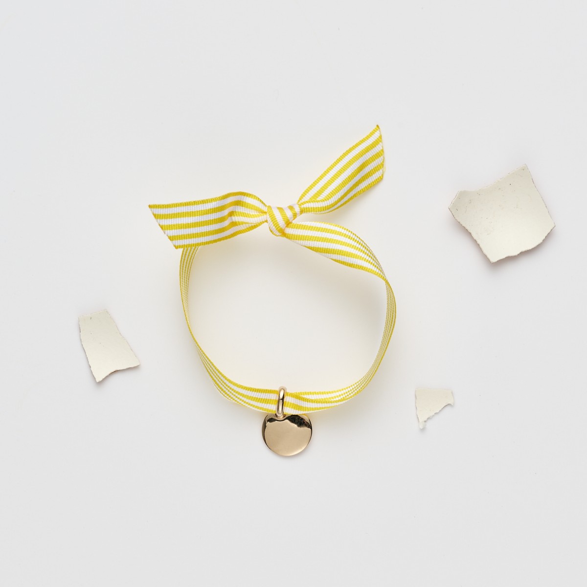 Bracelet Cabane, Bracelet en ruban à nouer 9 mm de couleur et pendentif en plaqué or 3 microns. Fabriqué au poulailler et caché dans un oeuf de poule l'Eggstra.