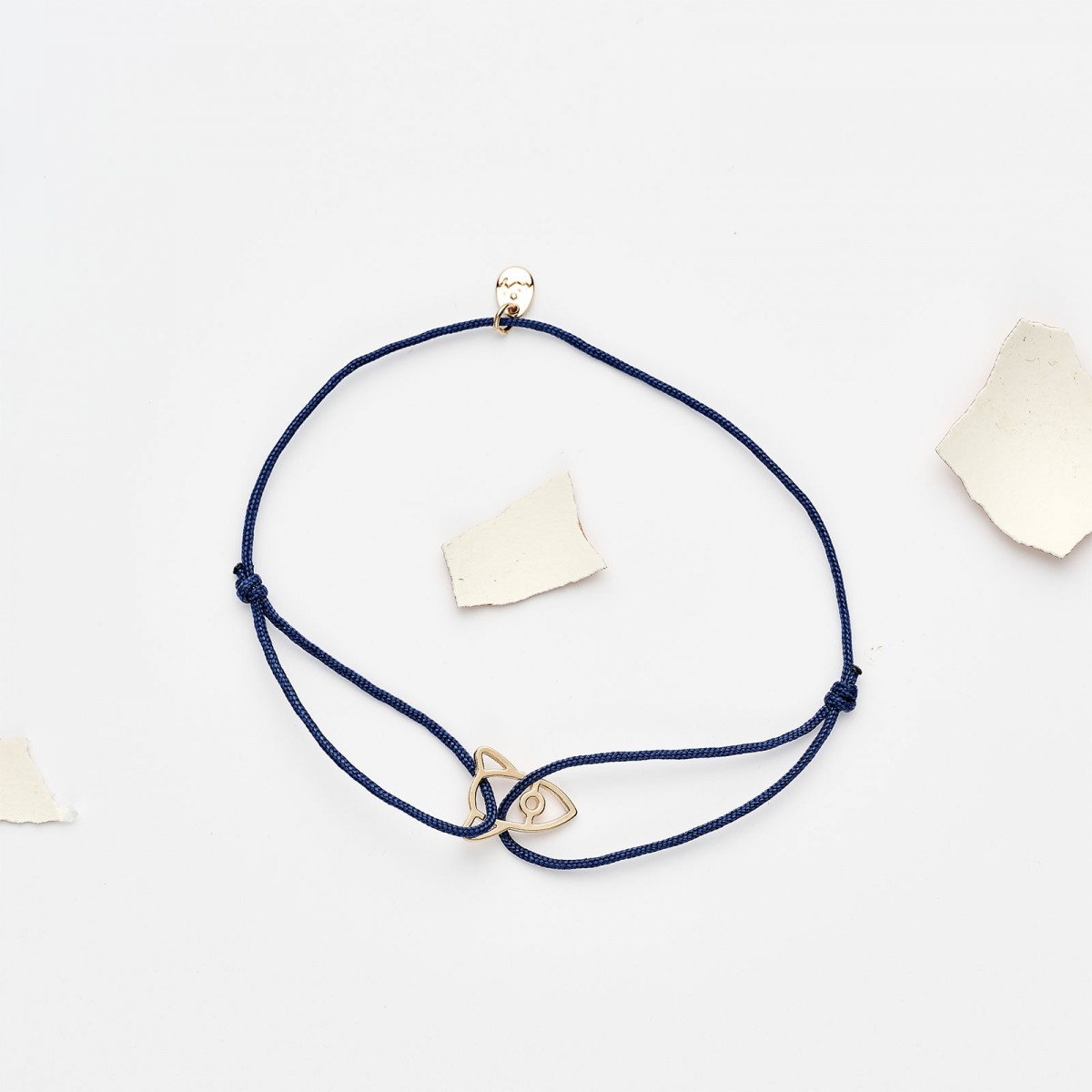 Fusée en laiton, doré à l’or fin 3 microns. Cordon en nylon : bleu.