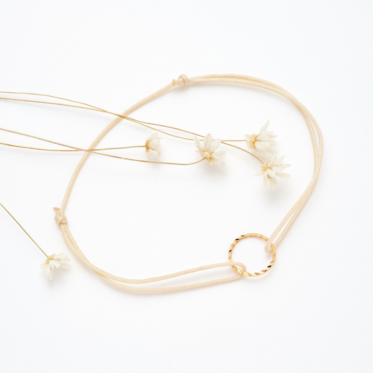 Bracelet coulissant (16 couleurs au choix) avec rond en laiton doré