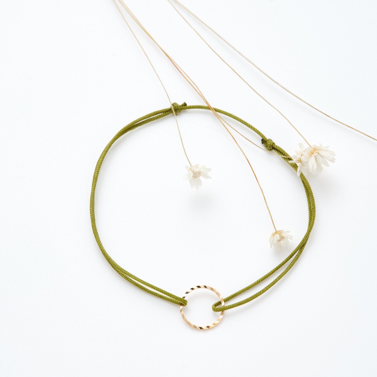 Bracelet coulissant (16 couleurs au choix) avec rond en laiton doré