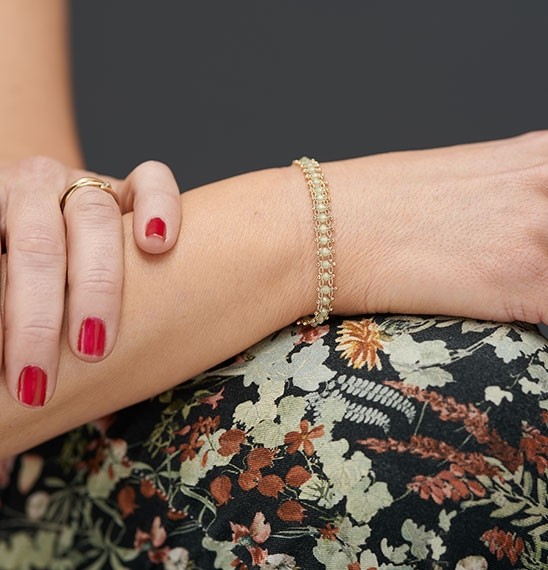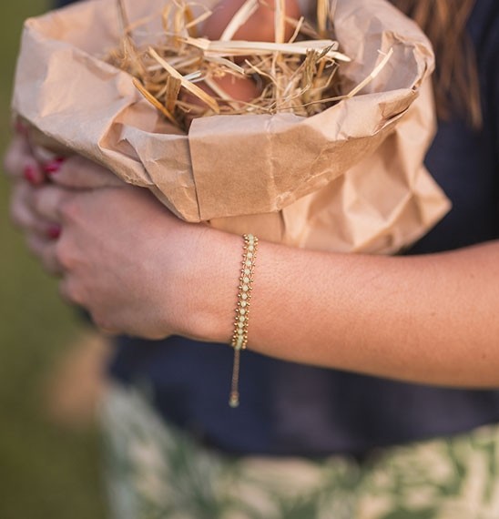 Bracelet en laiton doré à l'or fin et perles verre Vert d'eau
