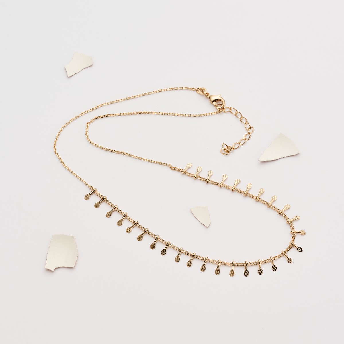 Collier en laiton doré 3 microns et sa chaînette de rallonge.
