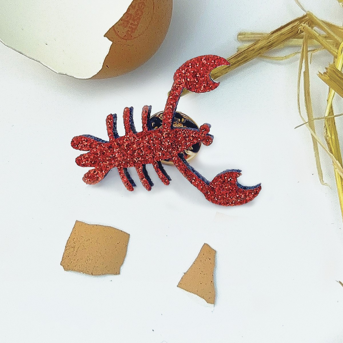 Le Pin's HOMARD paillettes 100% MADE in France. Ce pin's est fabriquée en feutrine pailletée rouge.