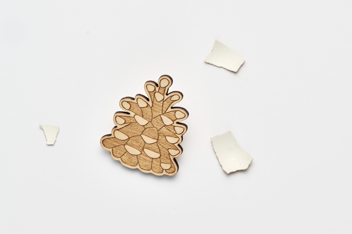 LE PINS BOIS PIGNE DE PIN 100% MADE in France. Ce pins est en bois, avec une attache métallique.