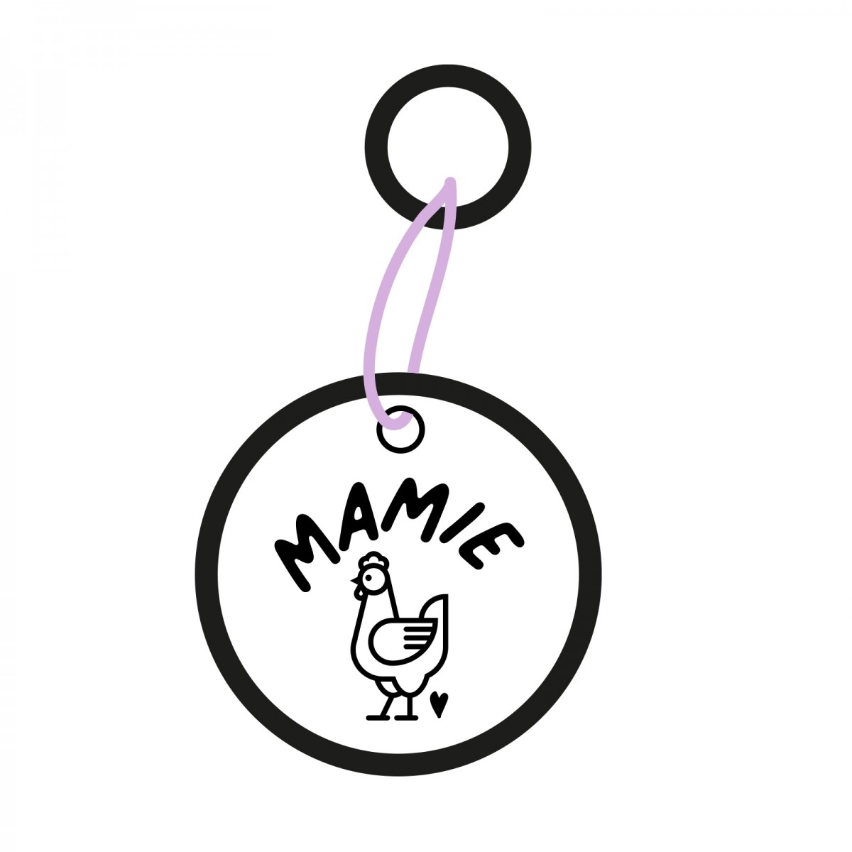 Porte Clé Bois gravé "Maman Poule" lien rose
