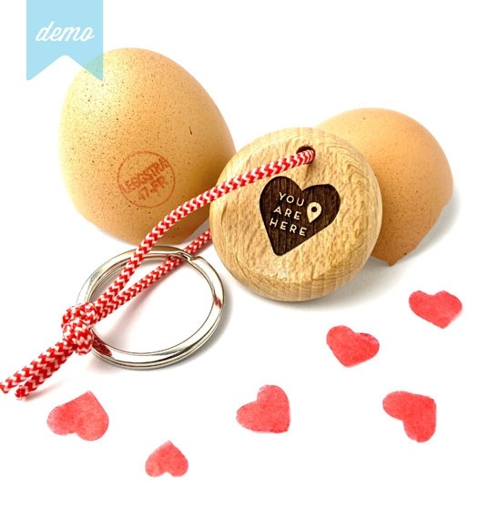 Porte clés en bois avec gravure "You are here" avec cordon chevrons rouge et blanc. Produit démonstration, vendu seul.