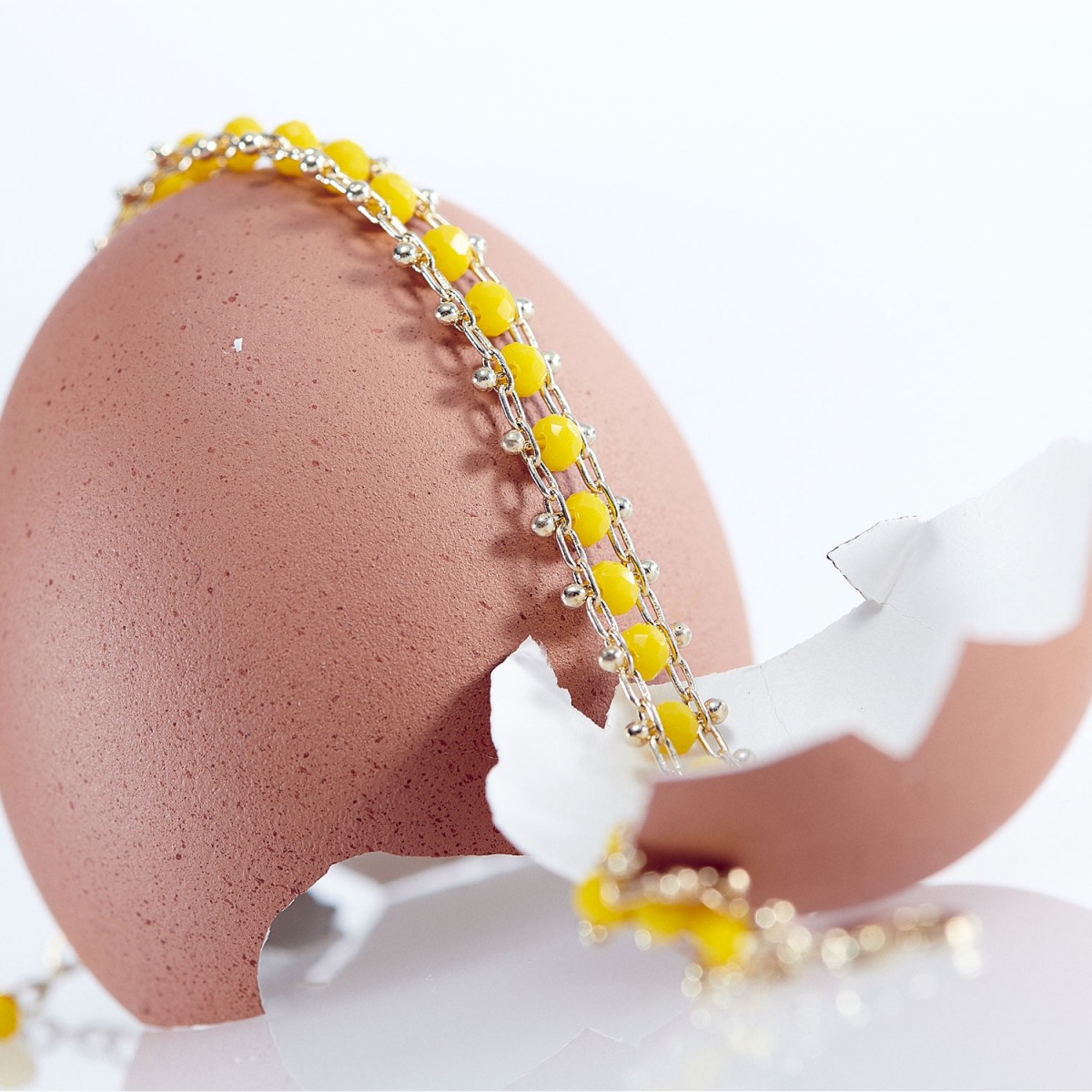 1 Bracelet en laiton doré à l'or fin et perles verre
