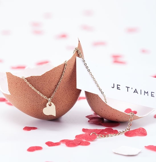Un collier coeur tout discret et tout mignons à offrir dans un oeuf avec un joli message "je t'aime" et des confettis rouge en forme de coeur. Pour une déclaration, une saint Valentin ou pour la meilleure des raison : juste pour faire plaisir
