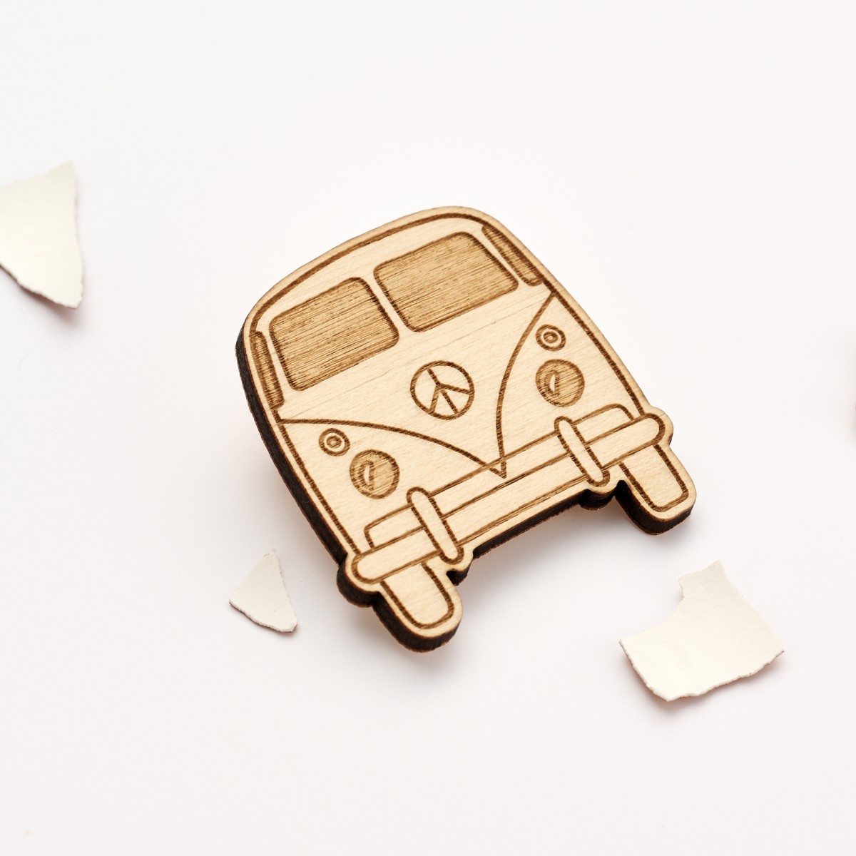 La broche bois COMBI 100% MADE in France. Cette broche est fabriquée en bois, avec une attache métallique.
