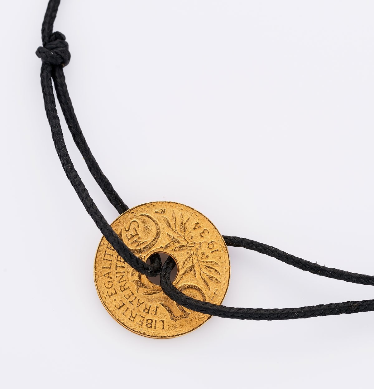 Ce bracelet reproduit l'emblématique franc des années 1920, avec une pièce plaquée en Or 24 Carats d’une finesse remarquable. Un bijou intemporel qui allie patrimoine et élégance, à porter au quotidien.