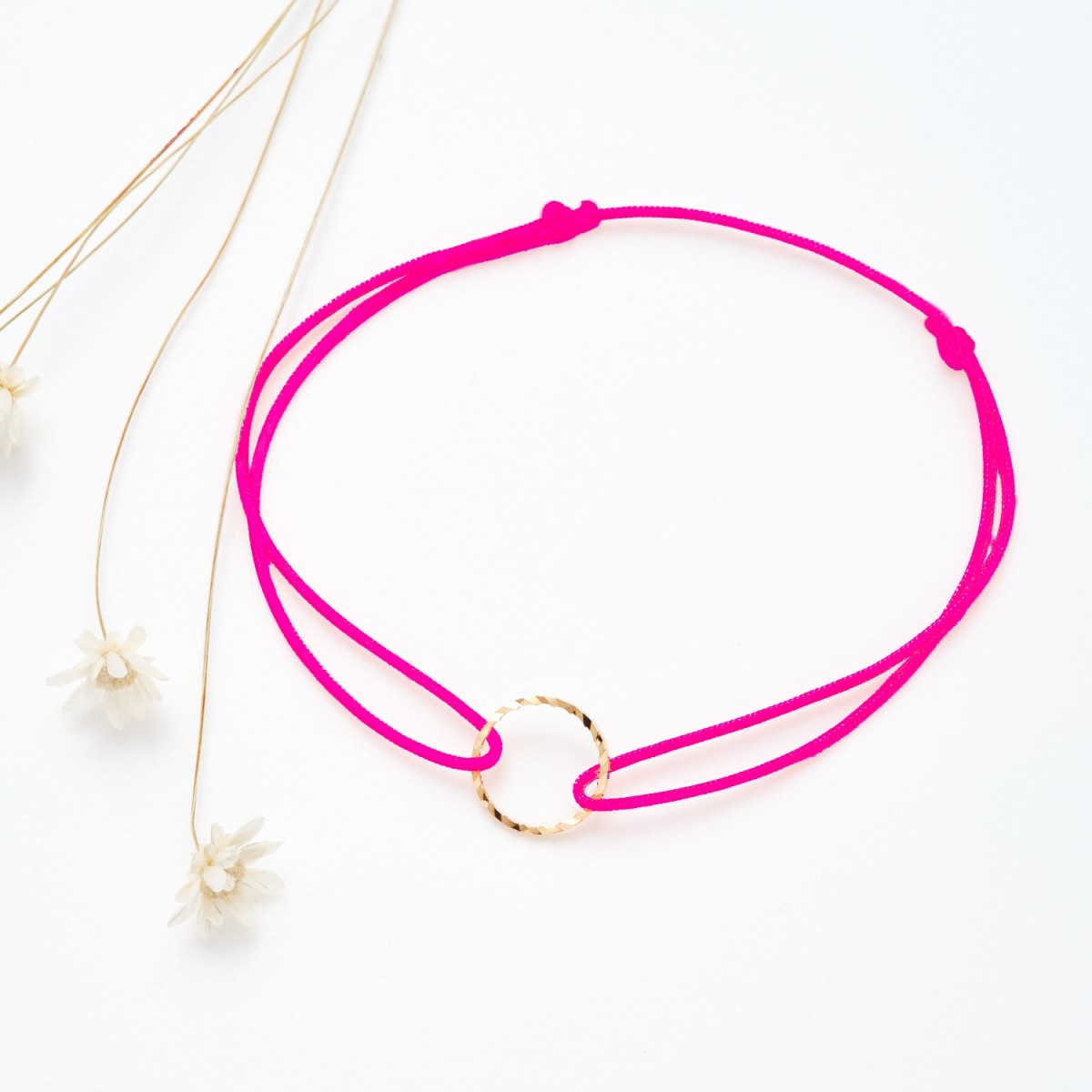 Bracelet coulissant (16 couleurs au choix) avec rond en laiton doré