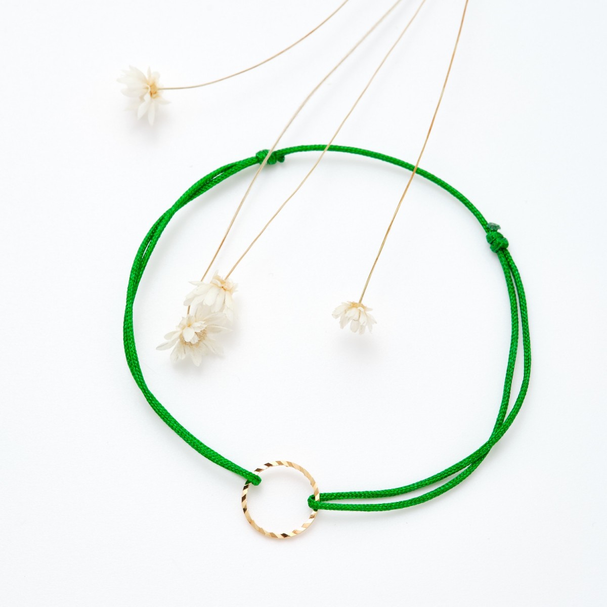 Bracelet coulissant (16 couleurs au choix) avec rond en laiton doré